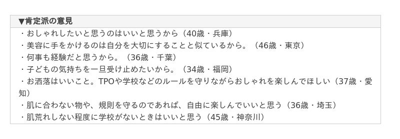 ◎【子のメイク「肯定的」が約8割】一昔前に比べ、子どものメイクに対する親の意識が変化してきている兆しか