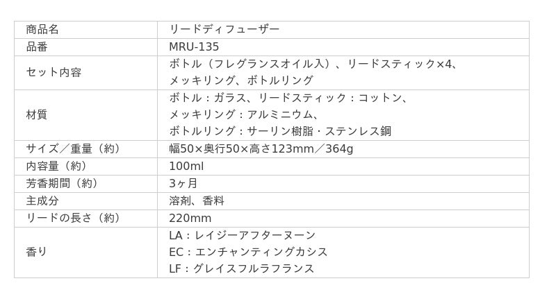 「リードディフューザー」 MRU-135
