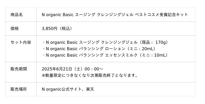 ■「N organic Basic スージング クレンジングジェル ベストコスメ受賞記念キット」を発売