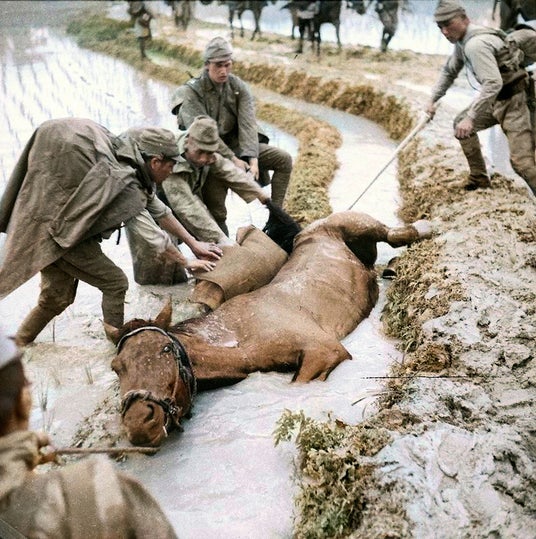 掲載にあたっては、渡邉氏が最新のAI技術を用いながら歴史資料と専門家との検証を重ねて色を補正し、可能な限り史実に沿ったカラー化を施しました。また、貴志俊彦氏(専門:アジア史,京都大学名誉教授・ノートルダム清心女子大学教授)により、動物たちが戦争に利用されていた当時の背景などが解説されています。