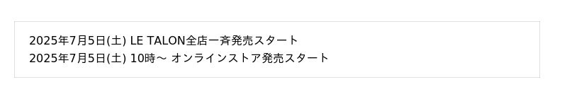 【LE TALON × lele 2ndCollection発売スケジュール】