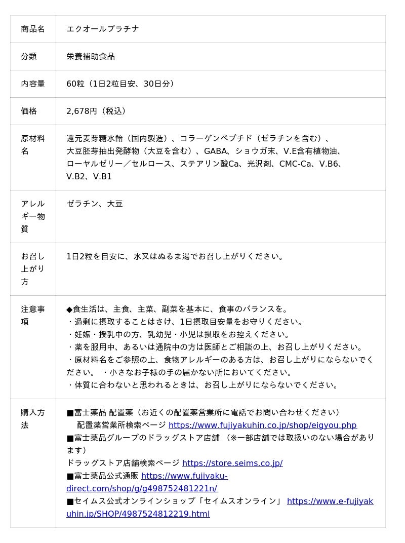 医薬品の開発から製造・販売までを行う複合型医薬品企業の株式会社富士薬品(本社:埼玉県さいたま市 代表取締役社長:高柳 昌幸、以下「富士薬品」)は、2025年7月1日(火)、女性の健康と本来の美しさをサポートするファヴィナスブランドから、年齢とともに変化する女性の心と身体に寄り添うサプリメント「エクオールプラチナ」(栄養補助食品)を新たに発売します。