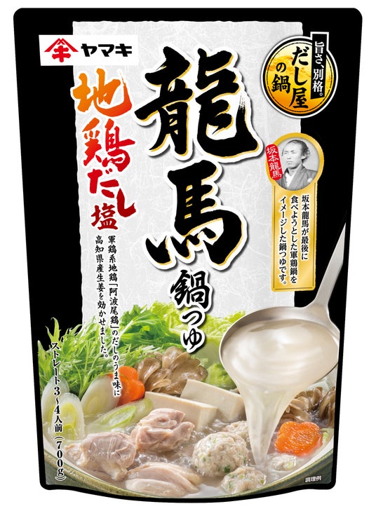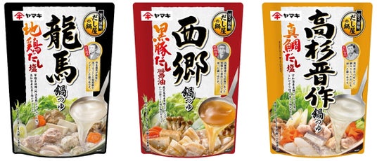 ヤマキ株式会社(本社:愛媛県伊予市 代表取締役社長:城戸善浩 以下ヤマキ)は、偉人とだしをテーマにした鍋つゆ「龍馬鍋つゆ 地鶏だし塩700g」、「西郷鍋つゆ 黒豚だし醤油700g」、「高杉晋作鍋つゆ 真鯛だし塩700g」の3品を発売します。「鰹節屋・だし屋、ヤマキ。」だからこそ作れる、だしにこだわり、だしのうま味を活かした、『旨さ、別格。だし屋の鍋』シリーズにユニークなラインナップが新登場です。
