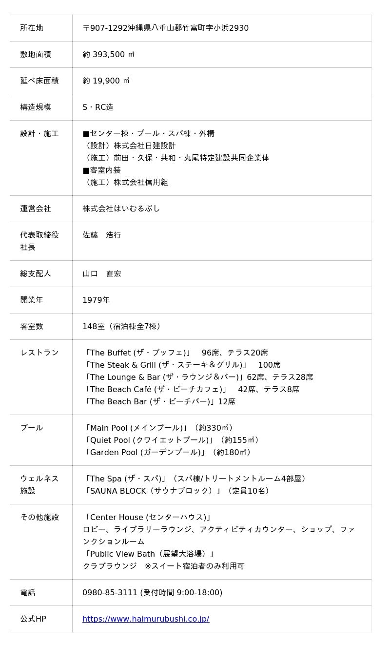 三井不動産株式会社(本社:東京都中央区、代表取締役社長 植田 俊)と三井不動産グループの株式会社はいむるぶし(本社:沖縄県八重山郡、代表取締役社長 佐藤 浩行)は、日本最南端のアイランドビーチリゾートホテル「はいむるぶし(所在:沖縄県八重山郡、客室数:148室)」を本日2025年7月15日(火)にリニューアルオープンいたしました。