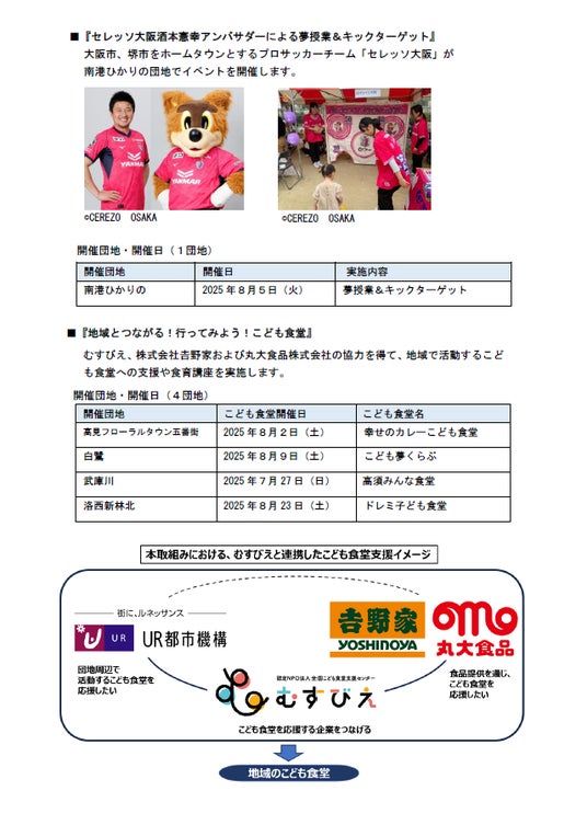 独立行政法人都市再生機構(以下、UR都市機構)は7~8月、夏休み期間に子どもの居場所づくりとなるイベントを全国の団地で開催します。