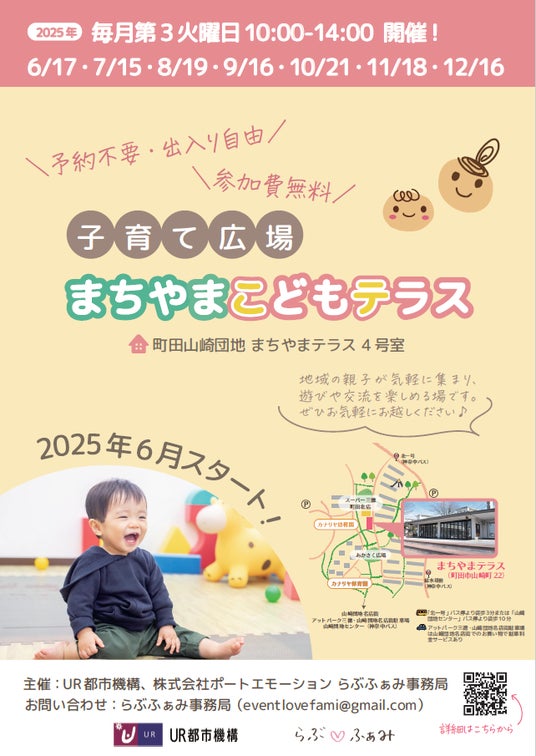 【概要】地域の親子が気軽に集まり、遊びや交流を楽しめる場として、町田山崎団地に新しい子育て広場がオープン!