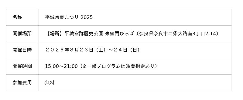 奈良の夏の〆は…平城宮跡歴史公園で家族みんなでエキサイトな夜に盛り上がろう!隼人舞と踊りの宴、アニソン盆踊り、よさこい、シャボン玉Night、豪華景品の大ビンゴ大会、…ワクワクが止まらない!