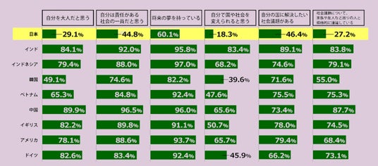 日本財団「18歳意識調査」(2024年2月)からの数値