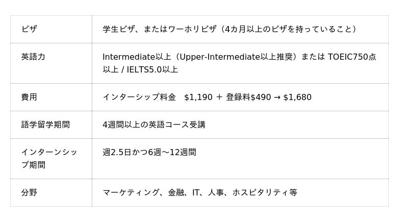 ELSIS(語学学校)英語コース(4週間以上) + 面接&レジュメ(履歴書)対策 + 現地企業でのインターンシップ(6週~12週間)