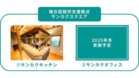 この拠点では、7月より運用を開始する「サンカクキッチン」と今後運用予定の「サンカクオフィス」の2つのプログラムを進めていきます。