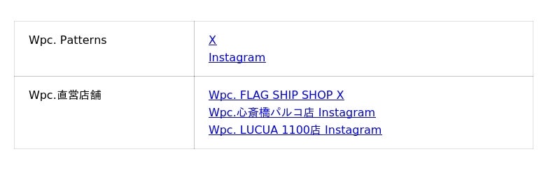 展開ブランド :Wpc. / W by Wpc. / Wpc. IZA / SiNCA by Wpc. / ONDOO by Wpc.