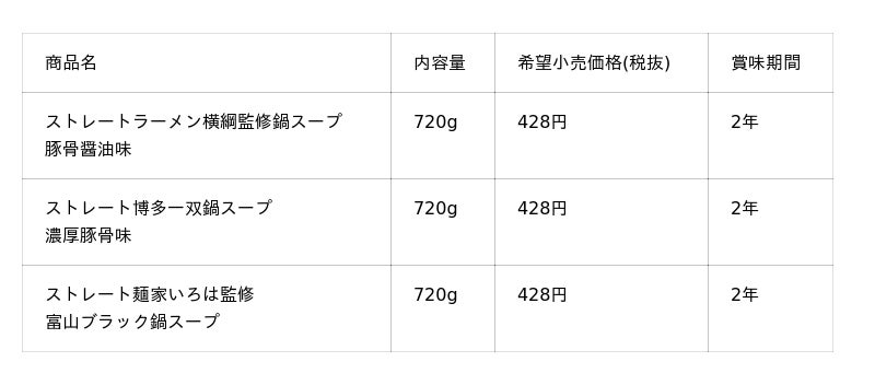 行列のできる人気店の味、人気ラーメンチェーン店の味をご家庭で手軽に味わうことができる鍋スープを新発売することで、鍋つゆ市場の活性化とラーメン愛好家のニーズに応えます。