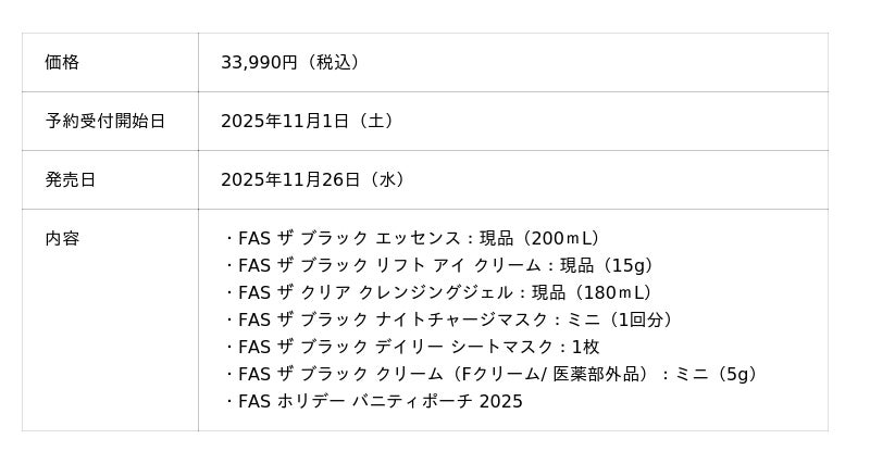 株式会社シロク(本社:東京都渋谷区、代表取締役社長:飯塚勇太)が展開する発酵エイジングケア*¹ブランド「FAS(ファス)」は、3種のホリデー限定コフレを発売いたします。