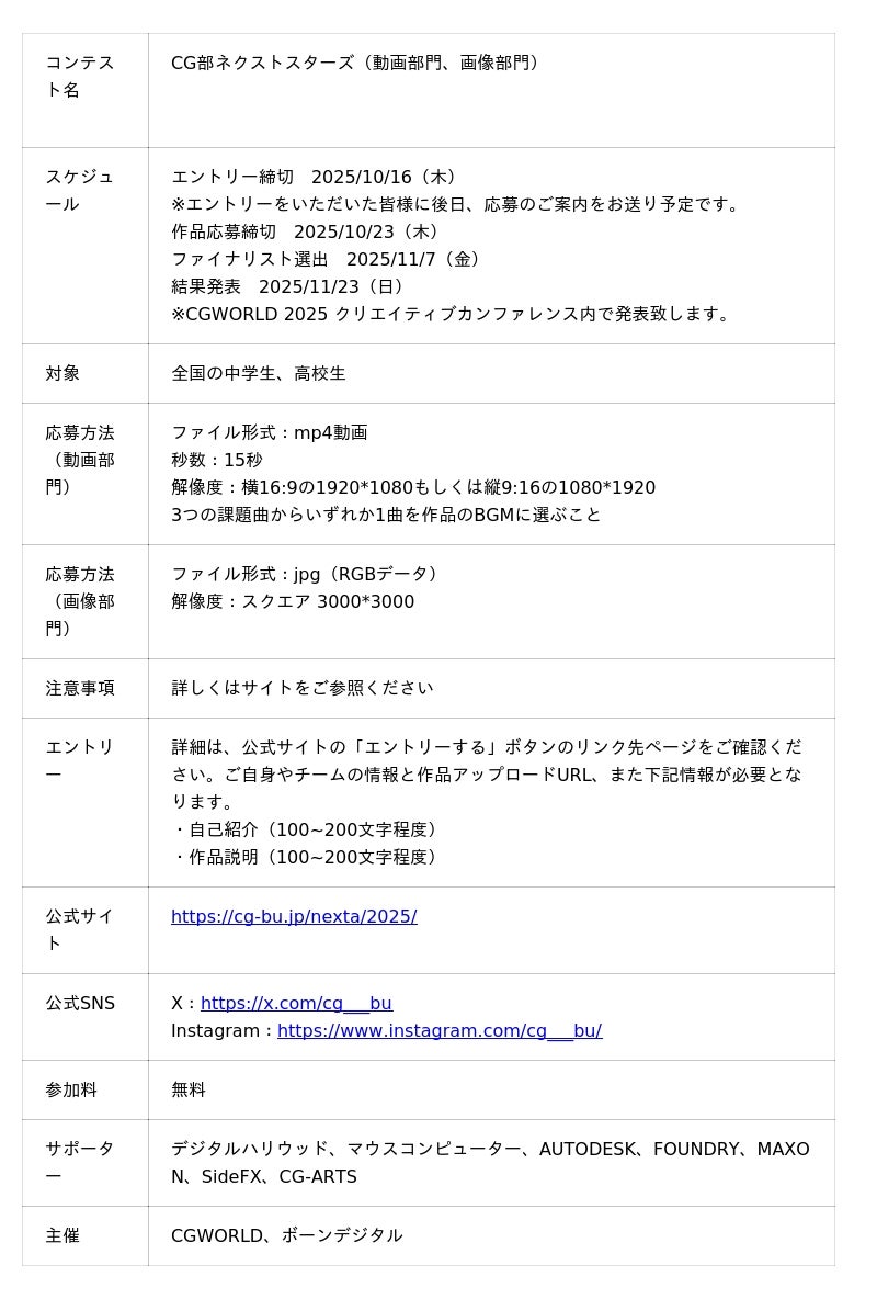 その第一弾として開催するのが、中高生限定の3DCGコンテスト「CG部ネクストスターズ」!