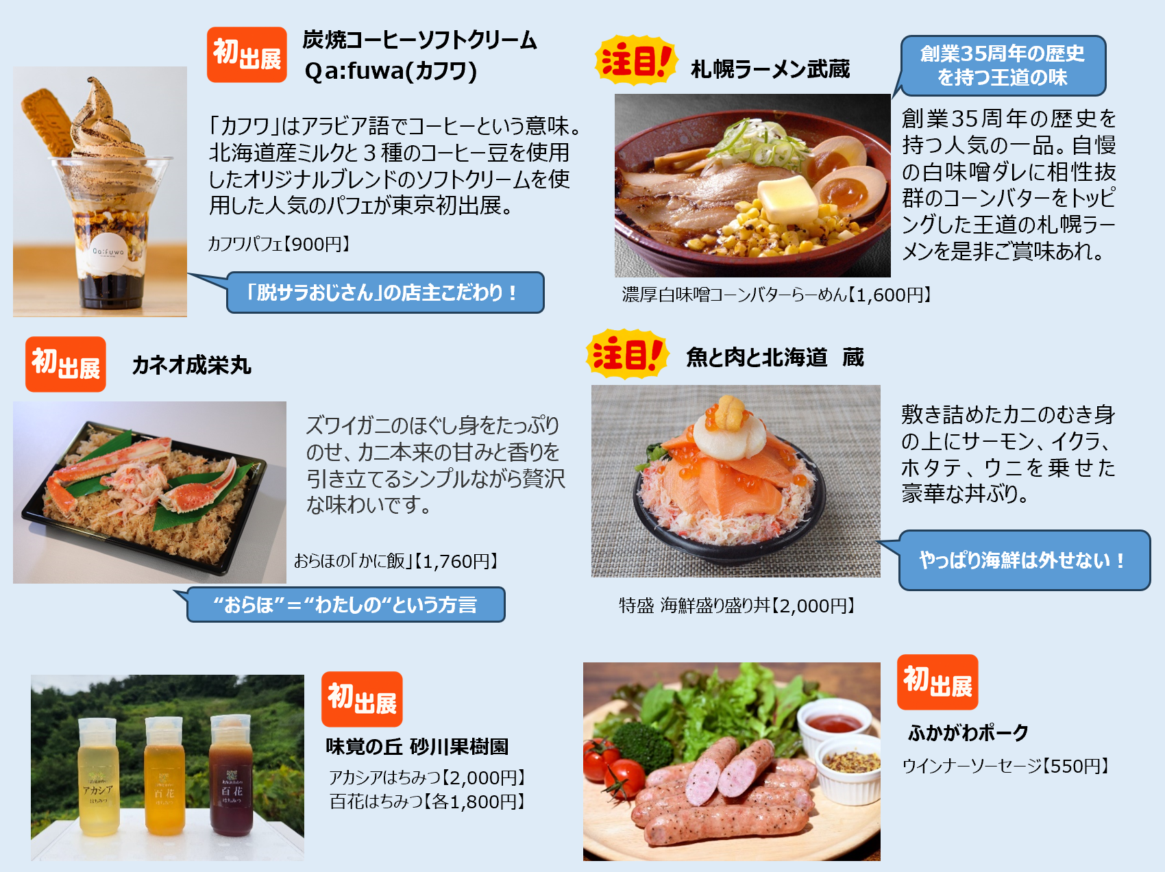 五感で楽しめる実演販売約40店舗を含む約60店舗が物産展に集い、まだ見ぬ北海道の魅力をお届けします。