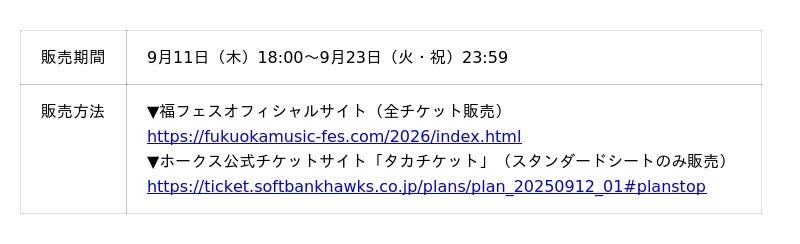 スタンディングエリアの応募期間および応募方法の詳細は、後日福フェスオフィシャルサイトにてお知らせします。