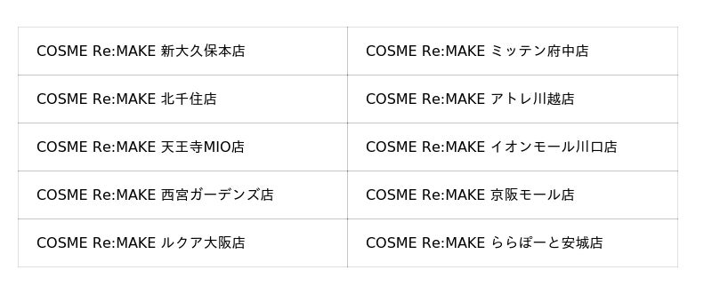 現在「COSME Re:MAKE」として首都圏・関西を中心に全国11店舗を展開しています。