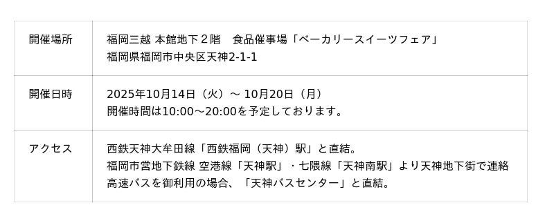 2025年10月14日から20日まで、福岡三越 本館地下2階 食品催事場に期間限定OPEN
