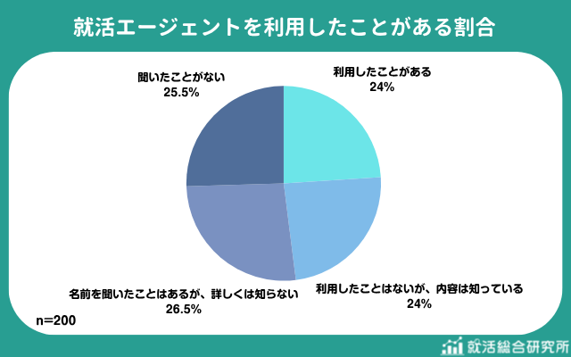 就活エージェントを「利用したことがある」学生は全体の24.0%にとどまりました。