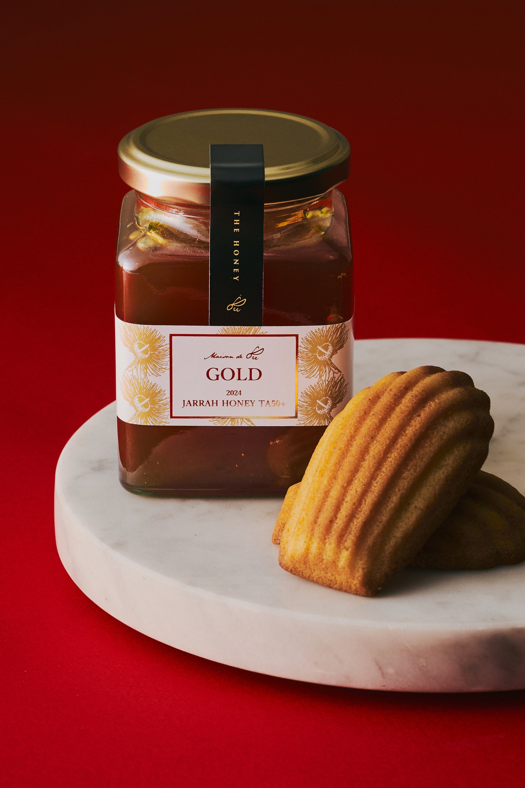 【ジャラハニーマドレーヌ】岡山蒜山のジャージー牛乳のバターをたっぷり使用し、メゾンドアイビーのジャラハニーを贅沢に加えたこのマドレーヌは、しっとりとした食感とともに、豊かな風味が広がります。特に紅茶との組み合わせは、上質なひとときを約束します。