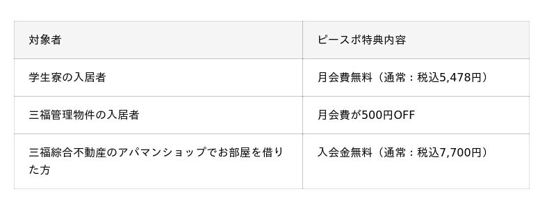 また、学生の皆さま向けに、P・SPOと三福管理物件をあわせてご利用いただくとおトクになる特典もご用意しています。