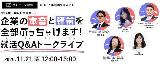 本イベントでは、学生と企業が率直な質問を投げ合い、働くことへの不安や採用のリアルを“ぶっちゃけトーク”で解消していきます。さらに最新データをもとに「就活生の価値観」と「企業の採用課題」を整理し、学生にはキャリアのヒントを、企業には採用・定着のヒントをお届けします。
