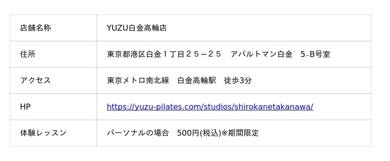 白金高輪駅に、ココロとカラダの健康美をサポートするピラティスレッスンを提供しているYUZUが通算65号店目を11月にOPEN!