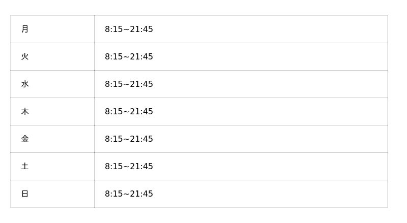 ※オープン時の営業時間となり、変更となっている可能性がございます。