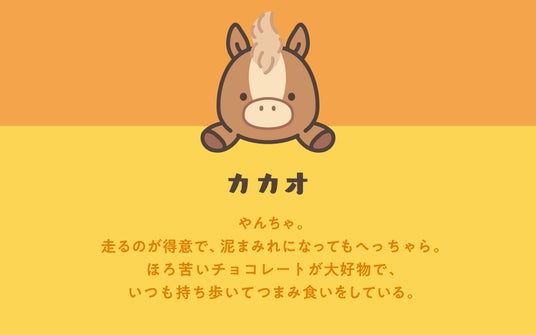 『ふんばるず ウマ』は、茶色の毛並みの「カカオ」と白色の毛並みの「シルク」の2種がラインナップ。「カカオ」と「シルク」と一緒なら、あなたの運気がもっと上がるかも。
