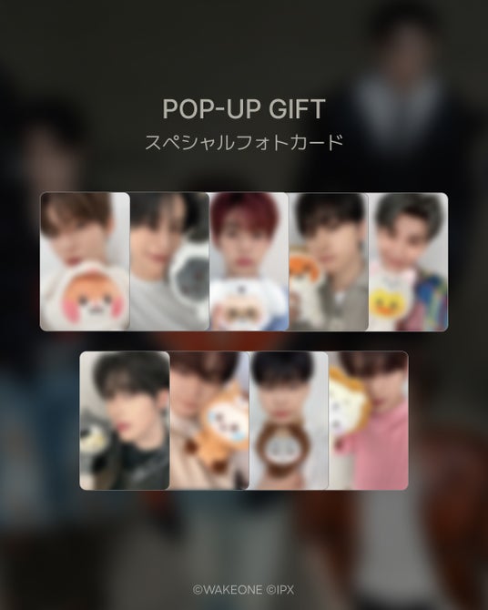 お一人様1会計税込5,500円お買い上げ毎にフォトカード(全9種)を1枚ランダムプレゼント、最大3枚まで。