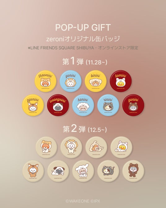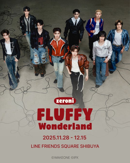 LINE発のグローバルキャラクターブランドLINE FRIENDSを展開するLINE Friends Japan株式会社(本社:東京都品川区、代表取締役社長:金成勳)は、自社のフラッグシップストア「LINE FRIENDS SQUARE SHIBUYA」にて11月28日(金)よりボーイズグループZEROBASEONEの公式キャラクター「zeroni」のポップアップを開催します。zeroniはLINE FRIENDSとZEROBASEONEが一緒に作ったキャラクターで、「zeroni FLUFFY Wonderland」をテーマに行われる今回のポップアップでは、ぬいぐるみやフード付きブランケット、フォトホルダー、リユーザブルバッグ等がラインナップ。また、会場にはフォトスポットやレシート写真機(無料)、メンバーの手形も登場します。