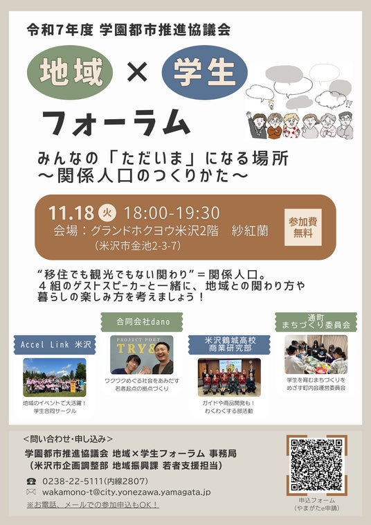 また、2025年11月18日(火)に米沢市で開催される「地域×学生フォーラム」に共同代表・伊藤大貴が登壇し、庄内地域での実践例を紹介します。