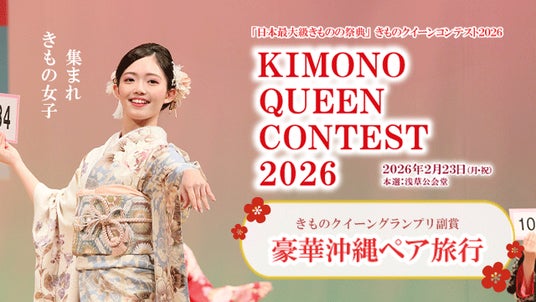美しいきもの姿を競う日本最大級きものの祭典「きものクイーンコンテスト2026」の開催決定。芸能プロダクション「インセントグループ」とタイアップし、モデルやタレントデビューの道も開かれる。