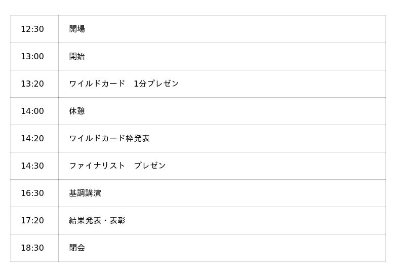 当日は、ファイナリストに奇しくも選ばれなかったプレゼンターには、“ワイルドカード”と呼ばれる、ファイナリストとして登壇するための挑戦権が与えられます。“ワイルドカード”に挑戦するプレゼンターは1分間のプレゼンを実施し、会場の参加者による投票でファイナリストが選出されます。