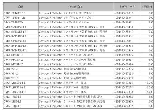 Campus X Rollbahn ソフトリング A5サイズ 750円、B6サイズ 650円