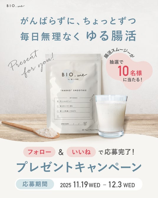 「BIO.me」は、そんな頑張りすぎない、自分らしいダイエットを応援します。食事を無理に減らすのではなく、いつもの朝に1杯プラスするだけで、手軽に腸内環境を整え、内側からキレイをサポート。このキャンペーンを通して、心と体が喜ぶ“ゆる腸活”という新しいダイエット習慣を体験していただきたいと考えています。