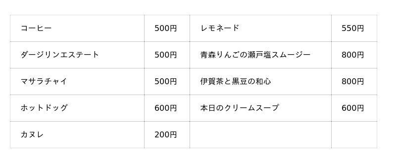 ドリンク・フードメニューは、コーヒーなどの基本メニューに加え、日本各地の自然の恵みをそのまま楽しめるオリジナルスムージーや、ホットドッグ・スープなどをご用意します。北海道から九州まで「VMG HOTELS & UNIQUE VENUES」のもと全国各地の歴史的建物を再生し、地域共創を目的としたホテルやレストラン等を展開する当社。当店でも、地域の生産者のみなさまとのつながりやシェフの感性を活かし、日本各地から規格外の農産物を取り寄せて活用するなど、土地の恵みを楽しんでいただける食体験を提供します。