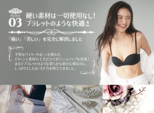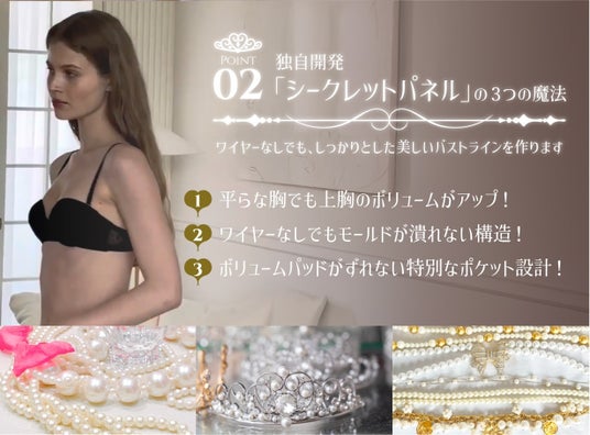 美しさの秘密は、カップ内側に隠された「シークレットパネル」にあります。ワイヤーなしでも理想のバストメイクを叶える、3つの機能を搭載しました。