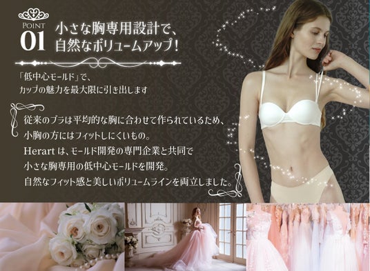 Herartは「Cカップまで限定」の商品開発をするブランドで、ハーフカップのバルコネット型を活かし、デコルテラインを美しく魅せる設計に拘っています。