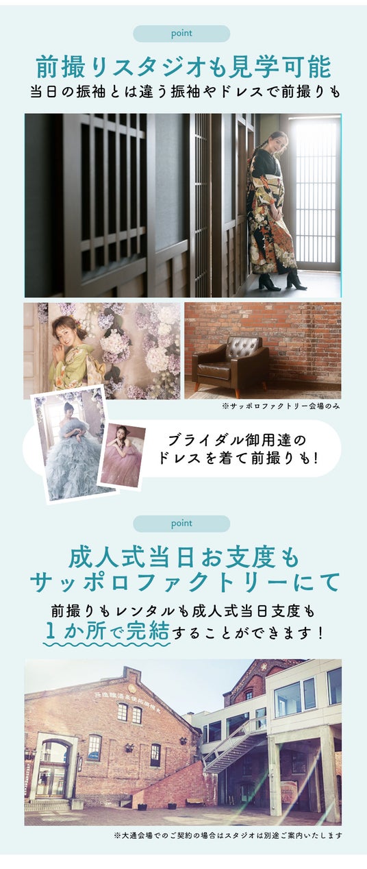 前撮りだけではなく成人式振袖レンタルがセットになったプランもご提案可能です。