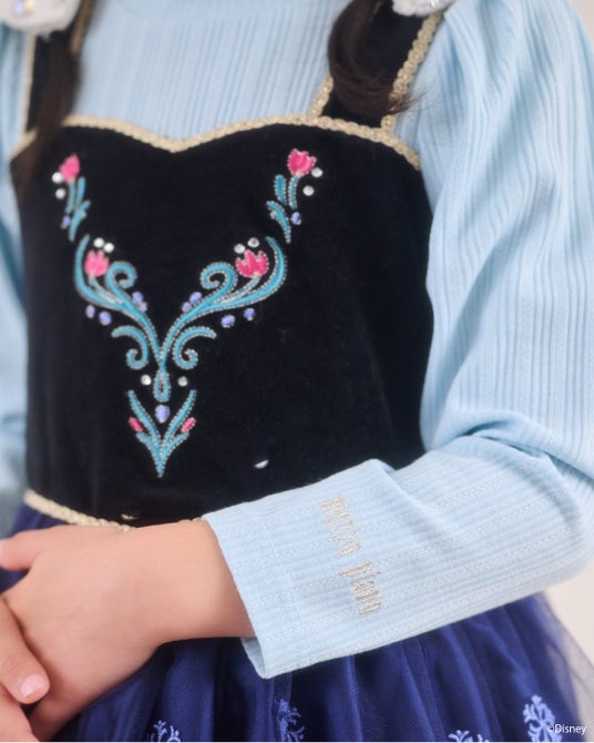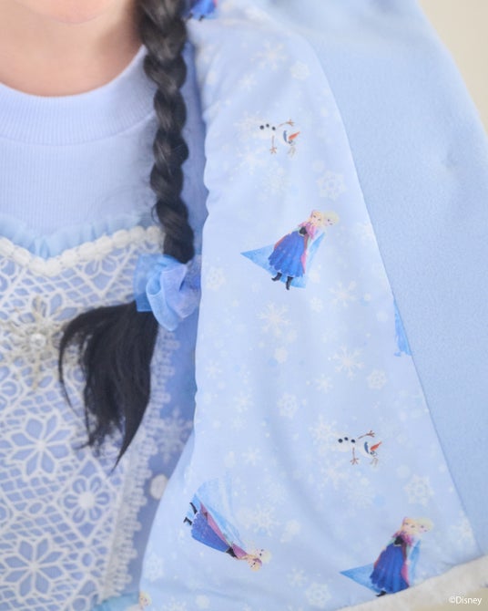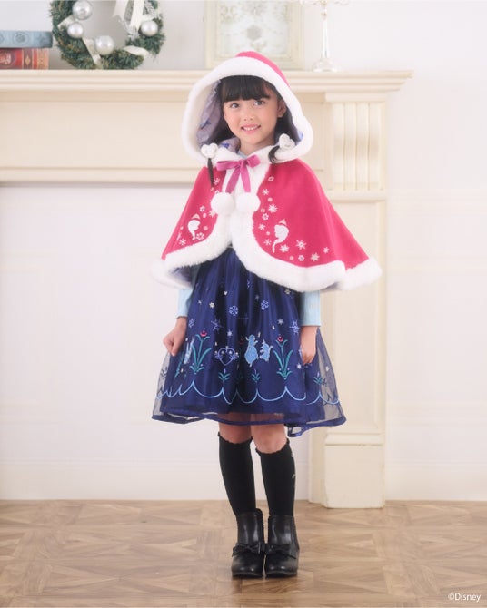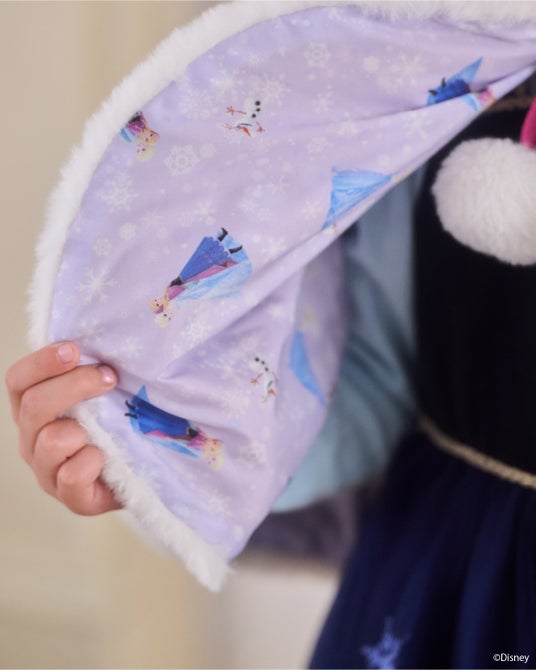 憧れの「エルサ」「アナ」をイメージしたポンチョは、雪のモチーフやキャラクターのシルエットを刺しゅうで表現し、メゾピアノらしく上品に仕上げました。