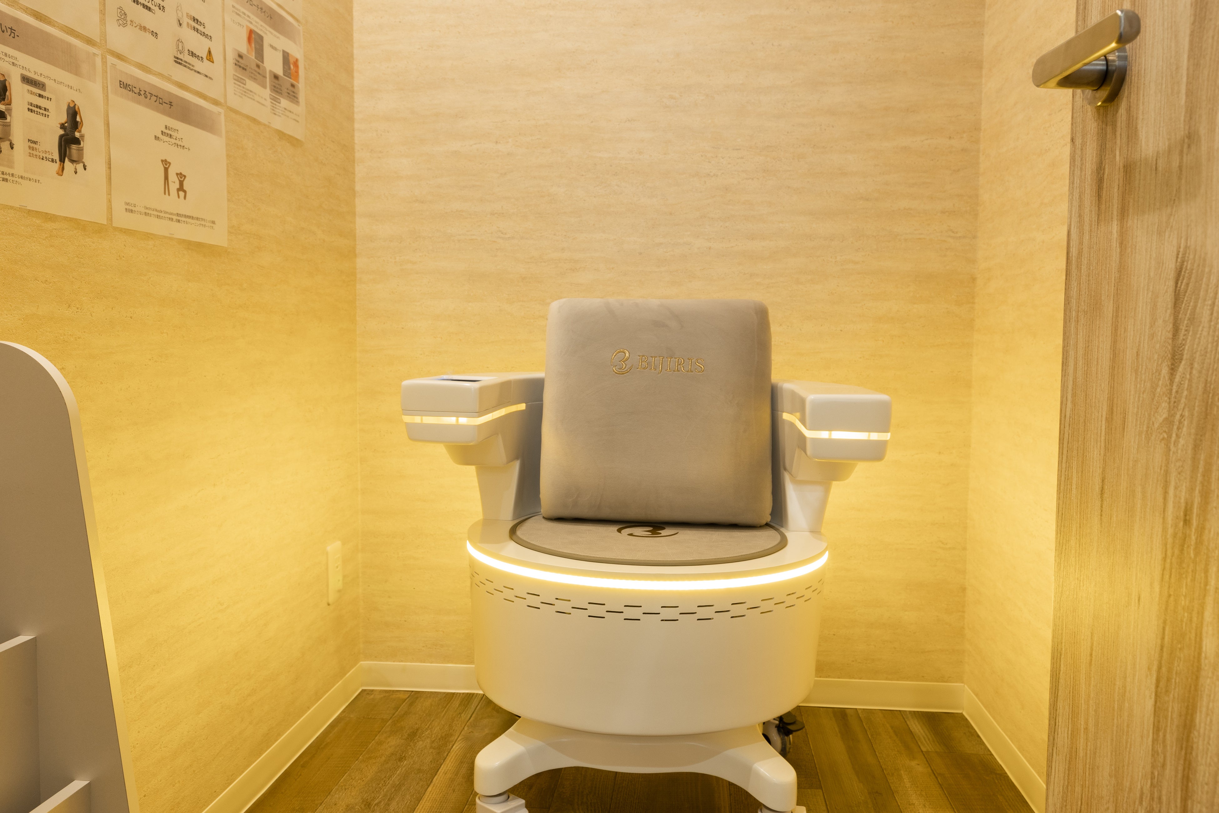 服を着たまま座るだけで「筋肉+脂肪」両方にアプローチできます。なかなか鍛えることのできない骨盤底筋や下半身を電磁パルスの刺激で座るだけで鍛えることができる美容マシンです。