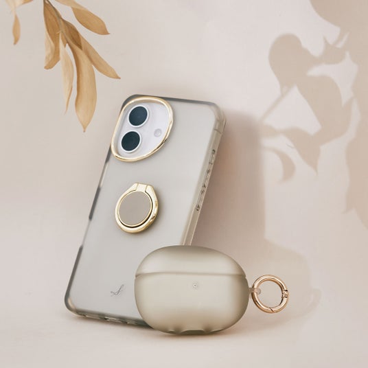 ジュエルのような透明感と、ころんとした丸みのあるフォルムが、アクセサリー感覚で手元を美しく魅せてくれます。カラーはチャコールブラック、グレージュ、クリアの3種類で、シアーなニュアンスカラーが大人のスタイルに上品に馴染みます。表面はマットでさらさらとした心地の良い質感で、指紋が付きにくい仕様です。さらに、MIL規格準拠の耐衝撃設計なので、日常使いでも安心してラフにお使いいただけます。不意の落下を防ぐカラビナ付きで、バッグやベルトループに装着でき、ミニバッグコーディネートのアクセントにもおすすめです。ケースを付けたままケーブル・ワイヤレスどちらの充電にも対応し、充電ランプもご確認いただけます。同じシリーズのiPhoneケースやApple Watchバンドと合わせてお使いいただくことで、統一感のあるコーディネートもお楽しみいただけます。