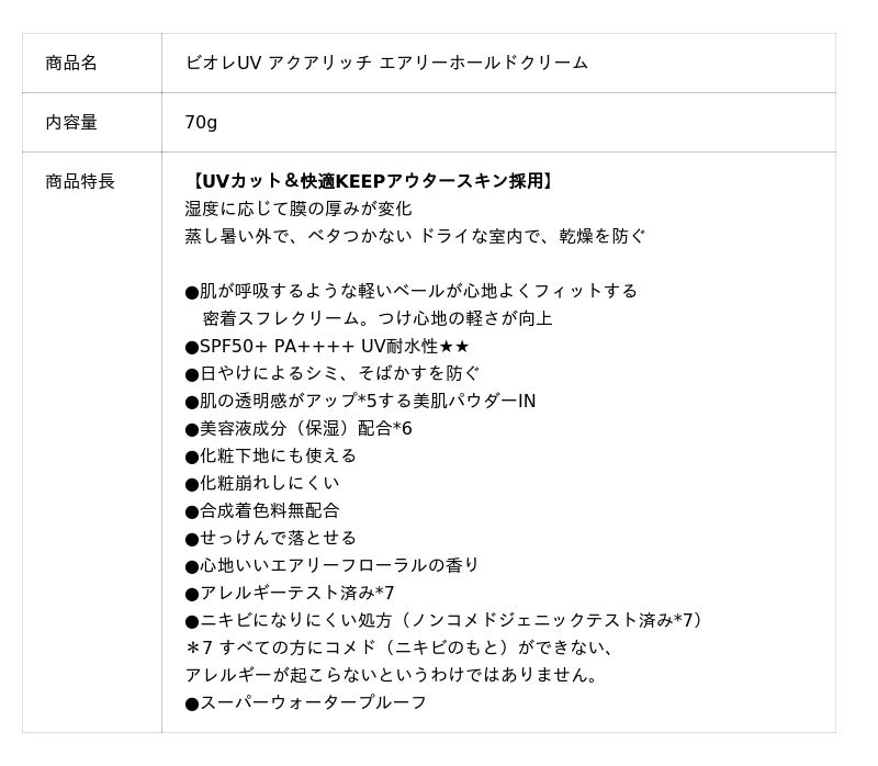 ■ビオレUV アクアリッチ エアリーホールドクリーム サイト