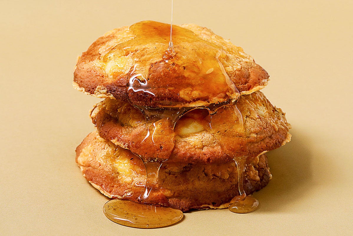 しっとりほろほろ食感のクッキー生地に、注目のピシュマニエ、ローストしたカダイフ、香ばしいピスタチオソースを重ねて焼き上げました。口に入れた瞬間にすっと溶けるピシュマニエに、“ドバイチョコ”特有のバリバリ・ザクザク食感を一緒に楽しめるハイブリッドスイーツです。1枚1,100キロカロリー超えで、なんとも“ギルティー”!