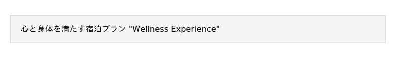 【プラン名称】Wellness Experience (ウェルネス体験)