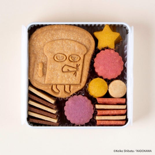 Cake.jpは「お子様もご家族もいっしょに美味しく召し上がってほしい」という想いから、お子様に大人気の絵本『パンどろぼう』とのコラボレーションが実現しました。原材料にもこだわり、中に入っているクッキーは「小麦・卵・乳」不使用です。小さなお子様に寄り添った商品を目指し、保存料、香料、着色料も使用しておりません。「かぼちゃ」「ビーツ」「紫芋」味のクッキーは、野菜パウダーを使用していますが、野菜が苦手なお子様も食べやすい味にしています。また、小さいお子様でも食べやすいよう、サクッとほろける食感にもこだわりました。