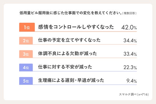 – – 低用量ピルを服用することで「働きやすくなった」と実感している人は約8割