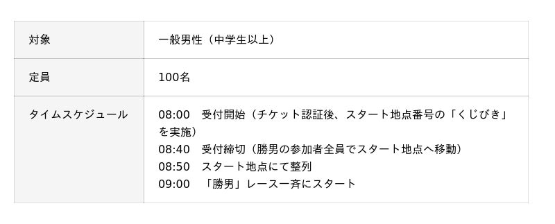 ※レースごとに受付締切時間が異なります。必ず締切時間までに受付をお済ませください。締切後はご参加いただけません