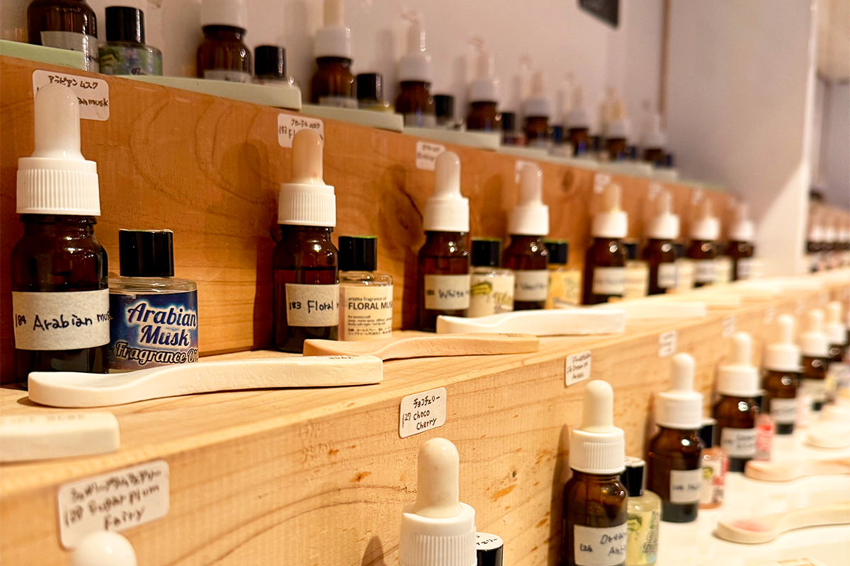100種類以上のフレグランスオイルをラインナップ。名古屋でも珍しい“香り作り専門店”。